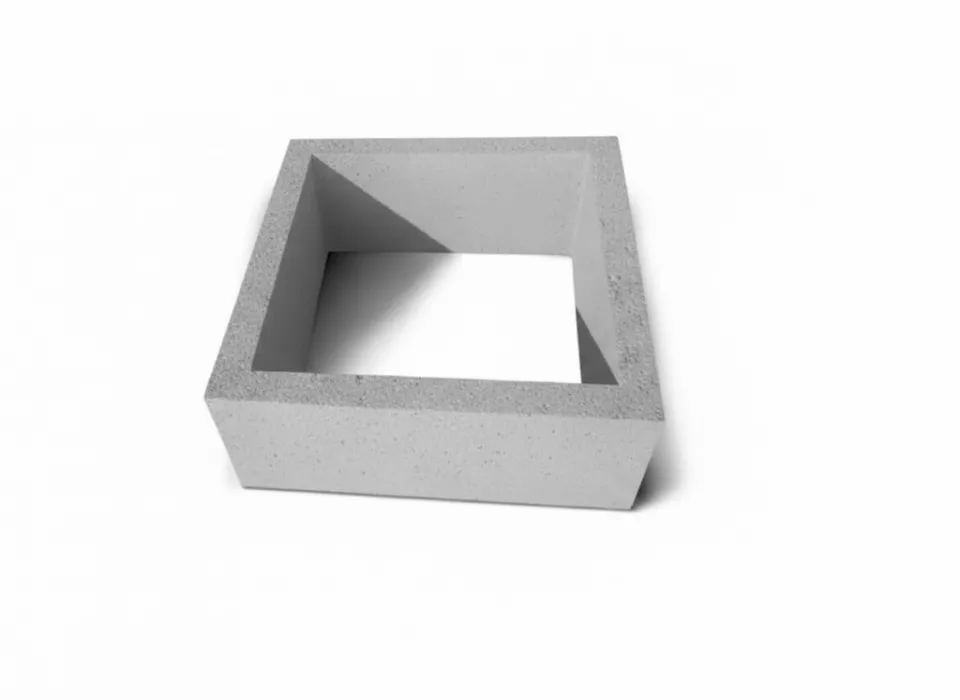 Rozměr vnitřní 600 x 600 mm, tloušťka stěny 60 mm, výška 15 cm.