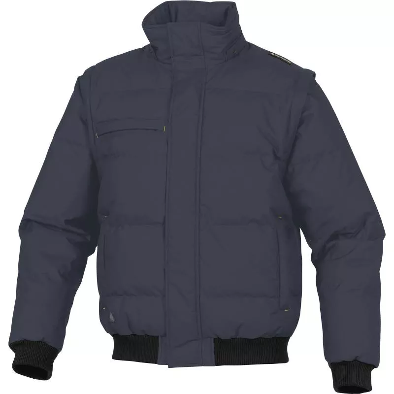 Prošívaná bunda s odnímatelnými rukávy. Zapínání na zip, krytý lištou na patenty. Pletené manžety a spodní část oděvu. Odepínací prošívaná kapuce. 5 kapes. Prošívaný polyamid s PU povrstvením. Podšívka: Prošívaný polyester Taffeta.