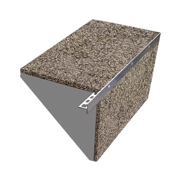 Ukončovací profil T výšky 10 mm nebo 12 mm se používá k ukončení hrany kamenných koberců a zajištění správného odvodu vody. Tento prvek je ve spodní části prodloužen a tím zajistí překrytí navazující vodorovné konstrukce. L ze jej využít např. na hranách schodu a ukončení teras či balkónů.