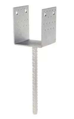Široká ocelová patka sloupu ve tvaru U s žebírkovým roxorem o průměru 16 mm a délce 250 mm.Patka sloupku je v rozměrech 101x100x100 mm a tloušťka stěny patky má 4mm. U patka s prolisem se používá pro spojení hranolů a nosníků s betonem.U patku s prolisem do betonu můžete využít při stavbě pergoly, zastřešení vchodů, přístřešku pro auto a podobných konstrukcí. Upevňuje se do betonu buď pomocí chemické kotvy po vytvrzení betonu nebo můžeme aplikovat rovnou při betonáži, kde vložíme trn patky do hustého betonu a zafixujeme výšku a směr U patky. Kotevní patky jsou galvanicky pozinkované.