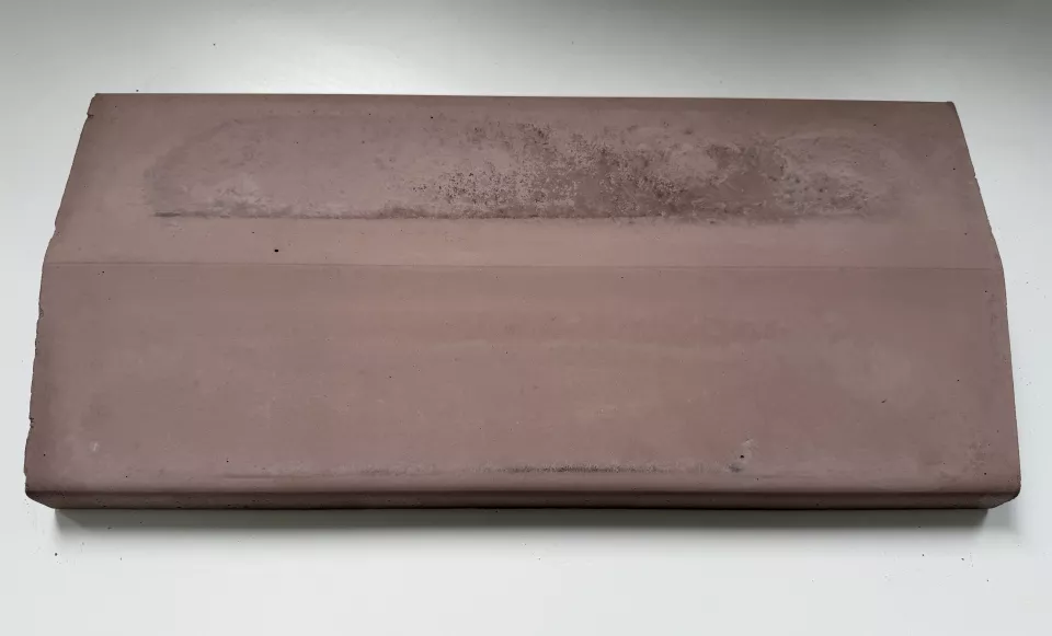 Betonová plotová stříška o rozměru 240 x 500 x 45 mm opatřena okapovou drážkou rovnoběžnou s délkou stříšky. Tvar stříšky je dvou spádový.