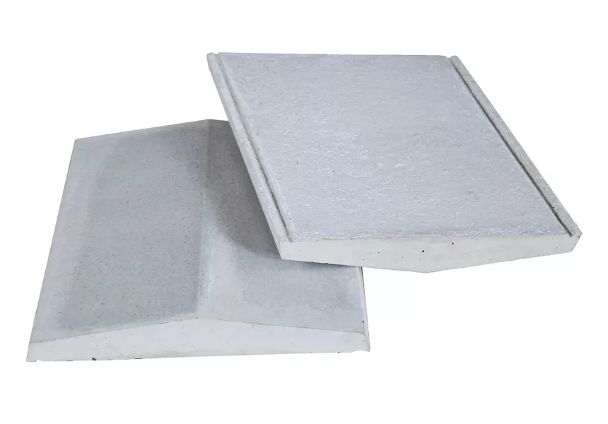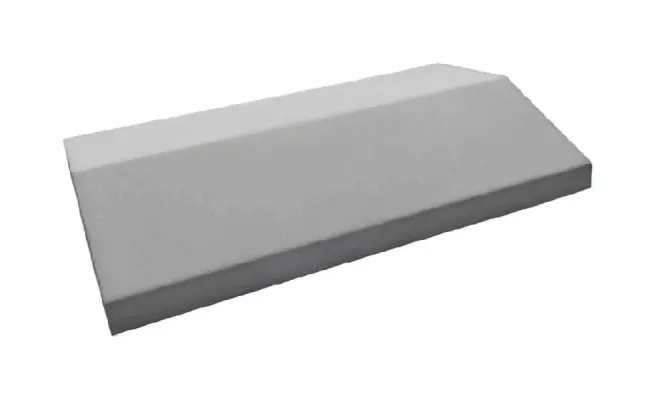 Betonová plotová stříška o rozměru 470 x 500 x 59 mm opatřena okapovou drážkou rovnoběžně s délkou stříšky. Tvar stříšky je dvou spádový.