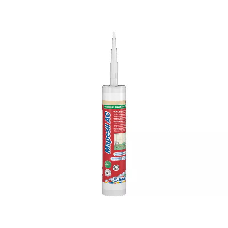Mapesil AC je jednosložkový silikonový těsnicí tmel bez obsahu rozpouštědel síťující v kyselém prostředí k dispozici barevný nebo transparentní. Jedná se o tixotropní pastu, která se snadno aplikuje na vodorovné i svislé povrchy. Síťuje vlivem atmosférické vlhkosti při běžné teplotě prostředí a mění se v pružnou hmotu s následujícími vlastnostmi: