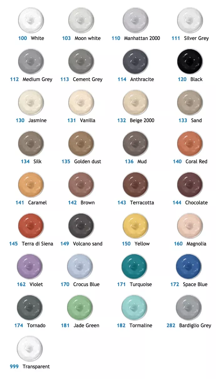 Všechny barvy spárovacích hmot Mapei jsou vzájemně sladěny mezi sebou i s těsnicím tmelem Mapesil AC