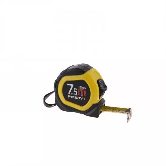 Kvalitní svinovací metr v délce 7,5 m s dobře čitelnou stupnicí. Pouzdro metru je vyrobeno z ABS plastu s gumovou ochranou což zaručuje vyšší odolnost proti poškození při nárazech a lepší stabilitu při manipulaci s měřidlem. Doraz pásky je z měkčené gumy. Magnetická koncovka pásky je volně uložena pro měření vnějších i vnitřních rozměrů.