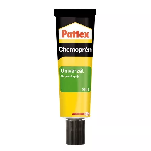 PATTEX Chemoprén Univerzál je univerzální kontaktní lepidlo. Umožňuje kvalitně lepit téměř jakékoliv materiály i v náročných podmínkách. Neobsahuje zdraví škodlivý cyklohexan a toluen. Zajišťuje vysokou pevnost a univerzálnost použití.Vhodné na univerzální kontaktní lepení různých savých i nesavých materiálů jako dřevo, plasty, guma, kůže, plech, sklo, korek, karton a mnoho dalších. Porézní nebo příliš savé materiály (hobra, dřevo) je vhodné před lepením nejméně jednou přetřít lepidlem Chemoprén Univerzál zředěným Chemoprén ředidlem v poměru 2:1.