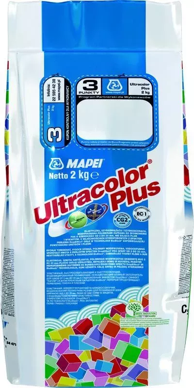 MAPEI Ultracolor Rychle tvrdnoucí a vysychající, hydrofobní, polymery modifikovaná spárovací malta pro výplň spár šířky od 2 do 20 mm, s účinkem DropEffect a s technologií BioBlock proti vzniku plísní. Ultracolor Plus je malta ze speciálních hydraulických pojiv, tříděného kameniva, speciálních polymerů, hydrofobních přísad, organických molekul a pigmentů. Ultracolor Plus využívá technologii Ultracolor , na bázi speciálních samohydratujících hydraulických pojiv, která zaručují dokonalou rovnoměrnost barvy prostřednictvím dvou inovativních technologií, které byly výsledkem výzkumu MAPEI: BioBlock a DropEffect. Technologie BioBlock obsahuje speciální organické molekuly, které se rovnoměrně rozptýlí v mikrostruktuře spár a zabraňují tvorbě a vývoji mikroorganismů. Technologie DropEffect díky optimálně kombinovanému účinku snižuje nasákavost vody. Smícháním Ultracoloru Plus s doporučeným množstvím vody, vznikne spárovací malta následujících vlastností: