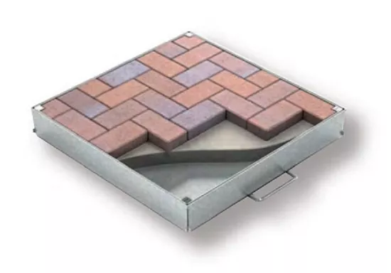 Zadlažďovací poklop s výztuží je určen pro zadláždění v pochozích plochách nebo pro méně zatěžované komunikace bez pojezdu aut. Je vyroben z hliníku a mezi rámem a krytem je umístěno těsnění, přičemž uzavírání je řešeno imbusovými šrouby. Povrch je možné doplnit dlažbou – a to až do tloušťky 150 mm, což umožňuje použití široké škály dlažebních materiálů a zajišťuje vysokou variabilitu při zabudování.