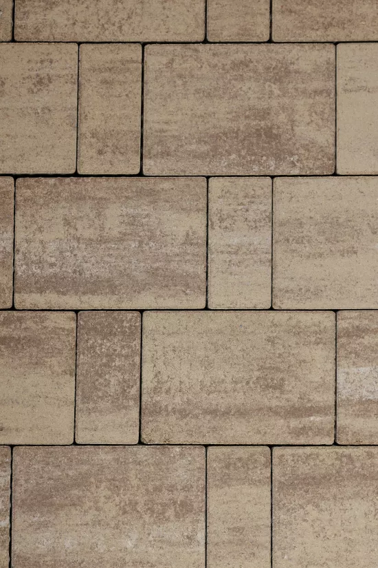 Písková barva vyniká svou schopností opticky zvětšit i menší plochy a dodat jim čistý, upravený vzhled. Díky kombinaci tří formátů působí výsledná plocha velmi přirozeně a harmonicky, přičemž si zachovává všechny technické přednosti moderní betonové dlažby.