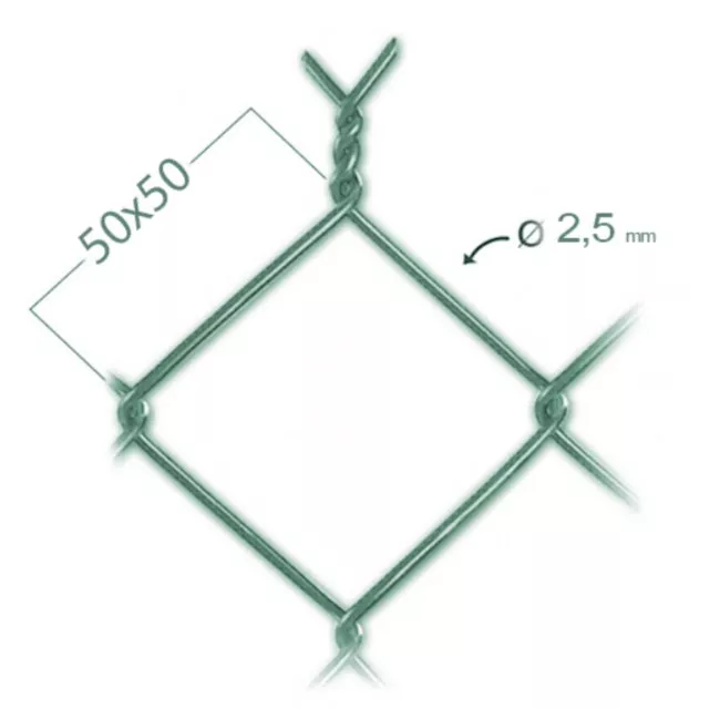 • Oko čtyřhranného pletiva má rozměr 50 x 50 mm