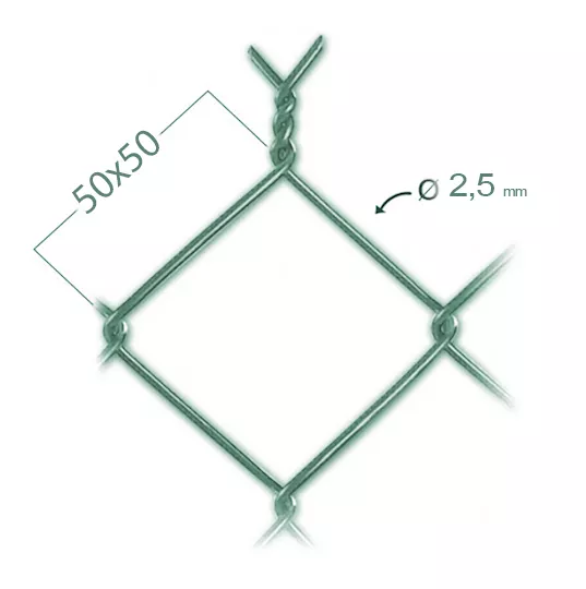 • Oko čtyřhranného pletiva má rozměr 50 x 50 mm