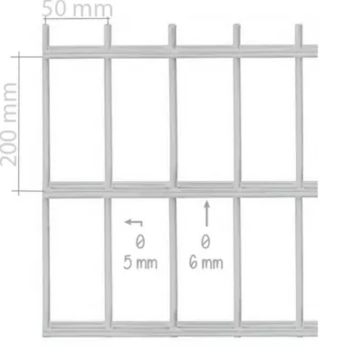 Standardní tloušťka svislého drátu je 5mm a horizontálně 2 x 6mm, v případě zájmu Vám umíme dodat i panely s větší tloušťkou drátů.
