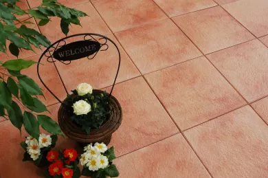 Dvouvrstvá teracová dlažba MRAMORIT v povrchové úpravě reliéf. Jemně tryskaný a impregnovaný protiskluzový povrch. Vhodná do interiéru i exteriéru. Rozměr dlaždice 40x40x3,8 cm